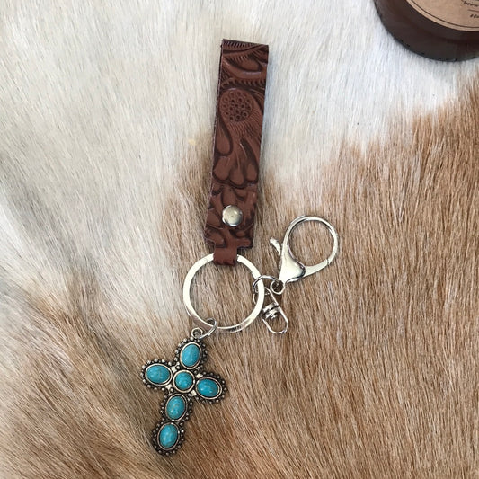 Western turquoise & leather keychain