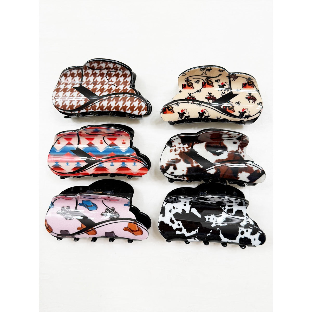 Available in six unique designs, this assorted set offers versatile, high-quality hair claws perfect for adding a touch of western flair to any look.